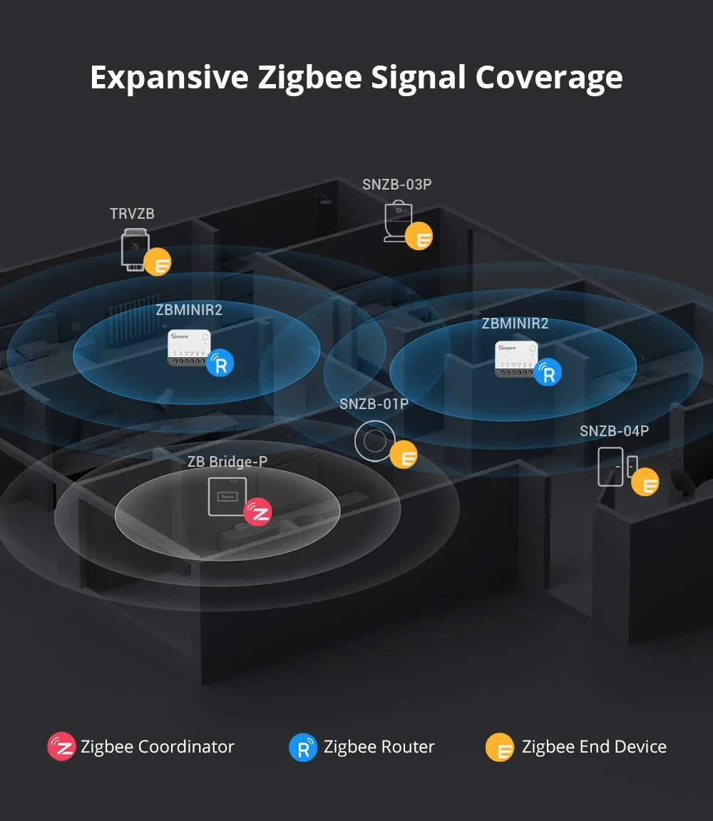 A reliable connection is crucial for your Zigbee network.ZBMINIR2, as a Zigbee router device with Turbo Mode', supports extending up to 64 Zigbee end devices, boosts signal strength, and expands coverage for optimal performance.